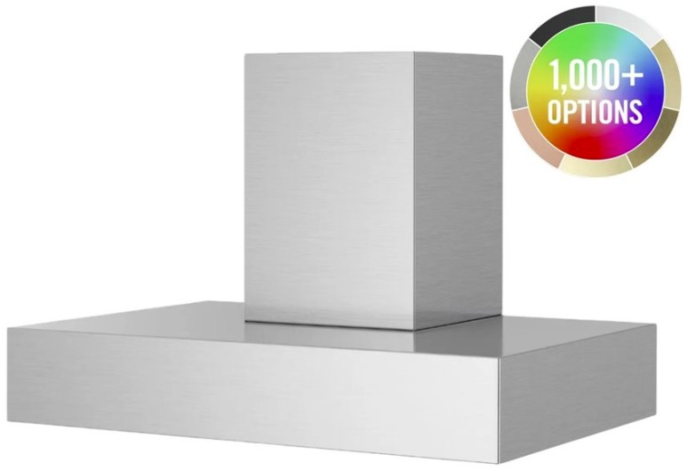 Metals & Strapping: Change your hood material from stainless steel to 14 different custom metals options including brass and copper. Plus, enhance your ventilation hood design by adding custom strapping and rivets to compliment other finishes in your kitchen.