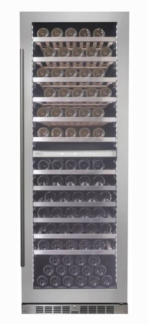 24 Inch Dual Zone Wine Cooler with 129 Bottle Capacity, Natural Wood Full-Extension Shelving, Dual Pane Glass Door, LED Light, Touch Controls, Pro-vection Cooling, Door Lock, Alarms, and Sabbath ModeRead More
