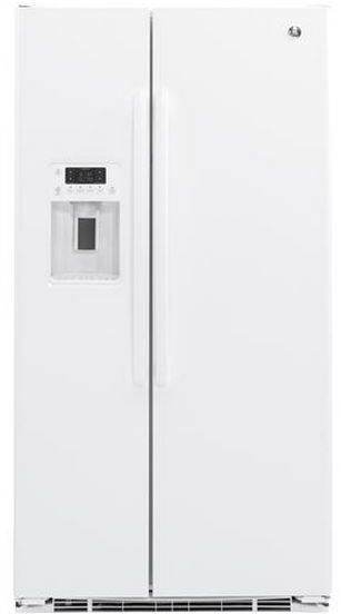 GE® 21.9 Cu. Ft. Counter Depth Side By Side Refrigerator-White with LED lighting, glass shelves and clear door binsRead More