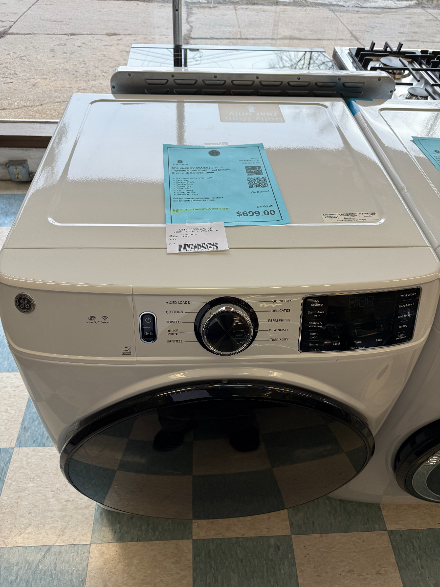 GE® 7.8 Cu. Ft. White Smart Front Load Electric Dryer with Sanitize Cycle
