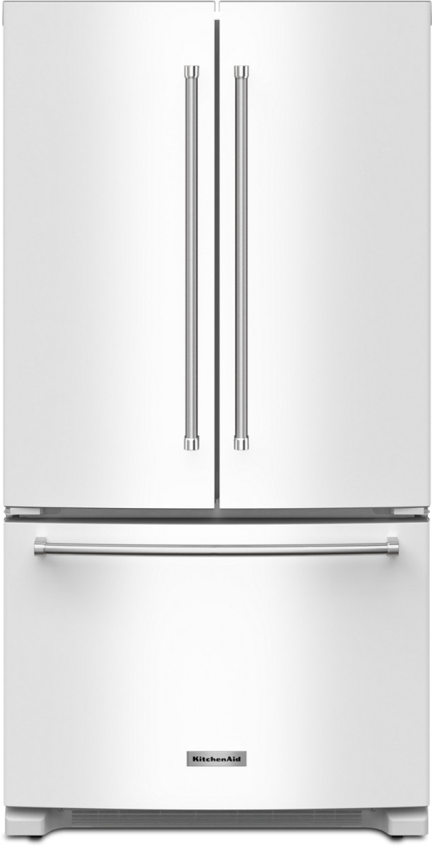 Enjoy freshness within reach. This KitchenAid® counter-depth French door refrigerator features an interior water dispenser to keep the outside looking sleek. Get customizable storage with an adjustable wood-look nesting shelf and convenient space for wide items.Read More