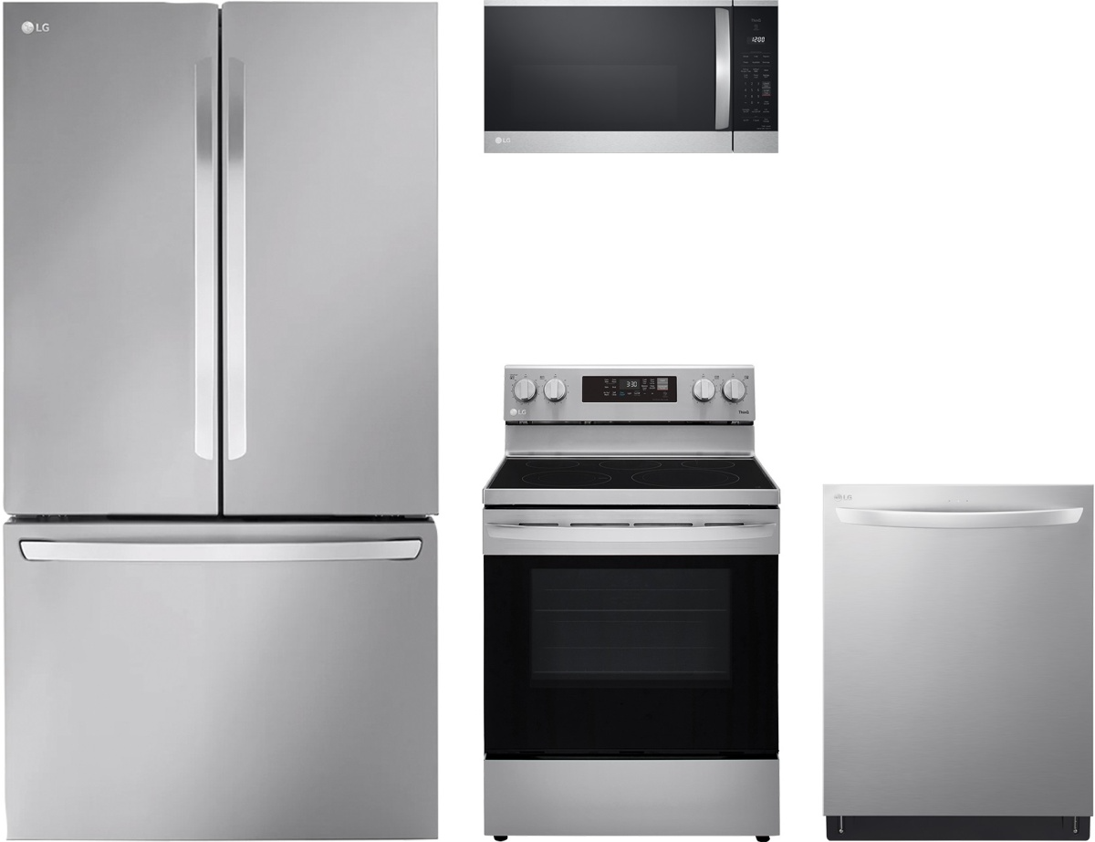 LG 4 Piece Stainless Steel Kitchen Package with French door refrigerator, built in dishwasher, freestanding electric range and over the range microwave.Read More