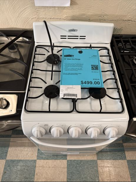 SUMMIT's line of slim-fitting gas ranges made in North America brings quality and value to space-challenged kitchens. The RG200WS is sized at just 20" wide for an easy fit in smaller kitchen spaces. Two slide-out racks include a safety brake system, with four position options to let you accommodate all sizes and shapes. The broiler is located in a lower drop-down compartment. We include a two-piece broiler pan with lid. The RG200WS comes in a classic white finish, with color-matched push-to-turn knobs and an easy-to-grab handle. This model utilizes electronic spark ignition and features four sealed burners for safer, cleaner cooking. One 12,000 BTU burner offers faster cooking for larger vessels, with two standard 9,500 BTU burners and a smaller 5,000 BTU burner for lower heating needs. The high backguard helps to protect your walls from spills, with enamel grates for lasting durability. The unit ships set for natural gas but includes its own LP kit for aftermarket conversion. With its clean look and unique size, the RG200WS is the ideal gas range for apartment and small home kitchens. NOTE: This unit replaces model RG200W but features an upgraded sealed burner design.