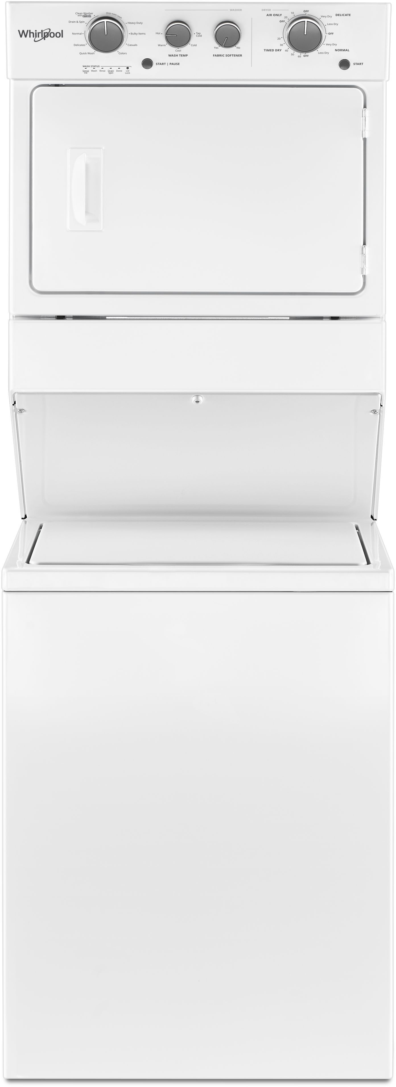 Whirlpool® Electric Stacked Laundry-White with 3.5 cu. ft. washer capacity, 5.9 cu. ft. dryer capacity, AutoDry™ drying system and white porcelain basketRead More